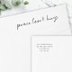 Simple, stylish, minimalist holiday wrap around return address label with modern informal casual handwritten script typography quote "Peace Love & Hugs" in black with a clean simple plain white background. The name and address can be easily customized for a personal touch. An elegant, minimalist and contemporary christmas design to stand out from the crowd this holiday season! #christmas #returnaddress