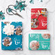 Photo wrapping paper - 3 designs in the set and you can customize each sheet with either the same or different photos. Personalize with pictures of who the gift is for or, who the gift is from; whichever you prefer. Each sheet is lettered with Peace Love & Joy in handwritten script and elegant typography. The designs are lettered in white on red, blue and green backgrounds but you can change any of these colors if you click "customize further". The photo template will display your pictures in round format - if you have any problems with placement, try cropping your pic to a square before uploading.