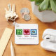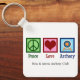 This cool custom archery club keychain features a peace sign, heart, and archer holding a bow and arrow. The perfect personalized gift for an archery teacher at a training center who provides lessons.