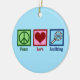 Lightweight, smooth, pure white ornament with nice sheen. Perfect size to be seen from across the room ... and to attract closer inspection! Price was great for ordering enough for the whole family! Clear, bold black design just as requested. Matches the order exactly. Just so nice!