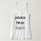 This modern Peace • Love • Beach graphic print tank top is perfect for your next beach day, or as an everyday statement top. Designed for anyone who lives in good vibes, flip flops and a coastal mindset. The charcoal text makes this scoop neck tank simple, uplifting, and versatile enough for any style.
