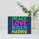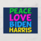 Cute Joe Biden Kamala Harris 2020 election postcard for a progressive democrat who loves fun, colorful political designs. Peace Love Biden Harris.