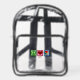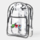 A cute librarian clear backpack featuring a peace sign, heart, and a stack of novels. Peace Love Books makes a good bookstore or book shop gift for an avid reader.