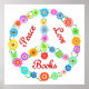 Share the fun of books with this peace sign made of colorful flowers and the words - Peace Love Books.