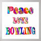 Share your love for bowling with this shiny blue design saying Peace Love Bowling. Great gift for a bowler.
