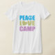 Peace Love Camp...What else do you need in life? Perfect gift for any camping addict. It doesn't matter if you go camping every weekend, your dream of buying a camper or trailer to travel in across the country during your retirement, you go away to summer camp every summer, you can't wait until the warm weather so you can pitch a tent and camp out in your back yard, you love everything about camping from the smores to hiking to fishing and cooking what you caught over the camp fire along with roasting marshmallow and hot dogs, you are a summer camp counselor, or you just like being outdoors in nature...you're addicted to camping! Funny gift idea for any camper. Great for any camping diva. Design features a heart and a peace sign. See our shop for more fun and unique Peace Love...shirts and gifts.
