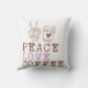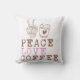A cool typography design for coffee lovers, that reads: Peace, love, coffee.