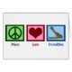 A peace sign, heart, and a cute croc rising out of the lake with big teeth! Peace Love Crocodiles card.