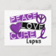 Peace Love Cure Lupus – powerful words to live by and strive for. Share this inspiring sentiment with our Peace Love Cure Lupus t-shirts, merchandize, and gifts featuring hip label text, a peace symbol, heart, and purple Lupus support ribbon.
