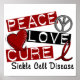 Peace Love Cure Sickle Cell Disease – powerful words to live by and strive for. Share this inspiring sentiment with our Peace Love Cure Sickle Cell Disease t-shirts, merchandise, and gifts featuring hip label text, a peace symbol, heart, and burgundy Sickle Cell Disease support ribbon.