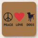 This customizable Peace Love Dogs product design with a peace sign, heart and dog silhouette makes a unique gift for dog owners and lovers.