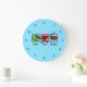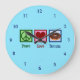 Cute Peace Love Donuts gift featuring a pretty peace sign, heart, and a delicious chocolate donut with sprinkles. A fun bakery wall clock for a sweets shop.