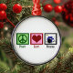 A peace sign, heart, and a cool drum design on a cute Peace Love Drums Christmas ornament gift for a great drummer.