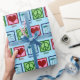 Peace Love Endoscopy wrapping paper for a birthday or Christmas gifts. A cute gift featuring a peace sign, heart, and endoscope used in medical procedures to scope a patient.