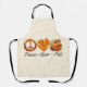 Embrace the beauty of fall with this "Peace, Love, Fall" apron, featuring a charming autumn leaves wreath, a pumpkin heart, and festive pumpkins. This cozy and seasonal design is perfect for fall lovers, pumpkin spice fans, and autumn enthusiasts. Great to add a warm and rustic touch to your fall collection.