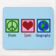 A cool geography teacher Christmas gift featuring a cute peace sign, heart, and globe of the Earth.