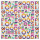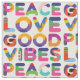 A pattern of unique colorful decorative text Peace Love Good Vibes. Beautiful piece of fabric for anyone. If needed, use the "Customize It" option to position the image on a product or to change the color of the background. Enjoy, buy one, have fun, and be happy. #peace #love #GoodVibes #color #text #typography #fabric #craft