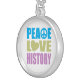 Peace Love History Silver Plated Necklace