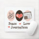 A peace symbol, heart and newspaper design in pink and dark brown on journalism t-shirts, tees, stickers and more gifts perfect for a broadcast or print journalism student, major or grad or future journalist, reporter, editor, newscaster or writer. Click on the following link to see all of our Chrissy H.
