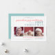 Holiday message reads 'peace love joy and kisses, it's baby's first christmas' in this very sweet design that features three photos of your lovely baby. In coral and teal on a crisp white background, it's playful, fun and makes your child's image the focal point.