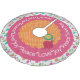 Peace Love Joy holiday tree skirt features a beautiful design of colorful strings of lights on white, a ring of solid pink, and a ring of orange with white polka dots with some pretty ornaments in matching aqua, mustard, and hot pink and text that reads Peace*Love*Joy! This beautiful Christmas tree skirt will be treasured for years to come!
