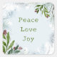 "Peace, Love, Joy" Rustic Christmas Pine Greenery Square Sticker
