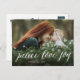 Peace Love Joy Simple White Script Modern Photo Holiday Postcard