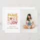 Peace Love Joy. Winter Christmas lettering photo Holiday Card