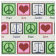 Peace signs, hearts, and the scales of justice on a blue fabric to make gifts for your favorite lawyer, judge, defense attorney, or prosecutor.