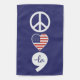 A garden flag using symbols for peace, love, and Kamala Harris.