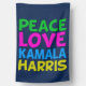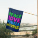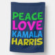 Cute Peace Love Kamala Harris blue house flag for a progressive democrat who loves fun, colorful political designs. Vote for Kamala for president in the 2024 election. A fun liberal design in bright colors.