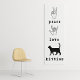 A minimalist tall narrow artwork canvas with the title "Love, Peace, Kitties" with a simple and clean design. The canvas has a white background to make the black elements stand out.