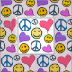 Peace, Love, Laugh, Smile, Live, pattern. With pink and purple hearts, yellow smiling and happy faces, and blue peace sign symbol with a light rose background. Helping you to stay cheerful, motivated, encouragement, inspiration, to have a great day. Surround yourself with positivity. Great for kids, girls, best friends, wife, girlfriend, sisters, aunt, grandmothers, mothers, children, and more.