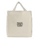 The bag is very nice, exactly like the image online. The text I designed came in exactly as I wrote it. Bag fabric is high quality, well sown and strong handles. Beautiful and exactly as I wrote and designed it ! Thanks