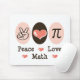 A peace symbol, heart and pi symbol on Peace Love Math t-shirts, tees, apparel and more math lover merchandise make a cute and hip gift for a math teacher, professor, mathlete or mathematician on Pi Day or Teacher's Appreciation week. Studios, LLC.