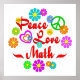 A fun way to promote and share your love for math. Enjoy this colorful design with a peace sign, hearts, flowers and the words - Peace Love Math.
