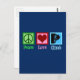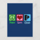 Peace Love Climb written under a green peace sign, a red heart, and a rock climber climbing a mountain on a blue background. A great gift for an athlete into extreme sports.