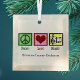 Pretty personalized musician Christmas ornament featuring a peace sign, heart, and a treble clef and musical staff. Cool custom PEACE LOVE MUSIC gift for a composer, music teacher, band director or choir conductor to give to their music students.