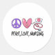 Nurse Design with the quote "Peace, Love, Nursing". I am proud to be a nurse. We are proud of our nurses. Nurses are our everyday heroes.