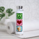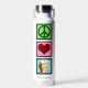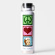 Beautiful Peace Love Nurse water bottle for your nursing staff or favorite LPN at a hospital. Features a cute peace sign, heart, and a pretty RN in a retro medical hat. Personalize with a name in blue.