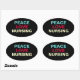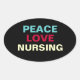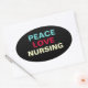 Our Peace Love Nursing Oval Stickers are perfect for Nurses Day or any occasion! Design features text in blue, red and white against dark background. Priced by the sheet with volume discounts available!