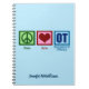 Peace Love Occupational Therapy notebook for your favorite occupational therapist. A peace sign, heart, and the letters OT make a great gift for all of the occupational therapists in your practice or office. Customize with your occupational therapy business name or the name of the OT and journal all of your notes and thoughts on clients and patients inside.
