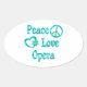 Share your love for Opera and have some retro fun with a peace sign, heart and flower and the words - Peace Love Opera. Makes a great gift.