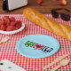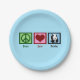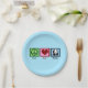 A pretty green peace sign, red heart, and a beautiful panda in a blue square. I love panda bears on cute zoo plates for a safari themed birthday party.