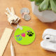 Cute graphic in colorful neon colors. 3 symbols - a peace sign, a heart and a paw, with the words peace, love and paws. For peace loving pet owners.