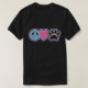 Design of a peace symbol, heart and paws icons in a retro-style outline.
