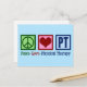 This cute physical therapist postcard features a peace sign, heart, and the letters PT for physical therapy. Great holiday or Christmas cards for a physical therapy office or business.