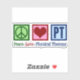 This cool physical therapist sticker features a peace sign, heart, and the letters PT for physical therapy. Peace Love Physical Therapy