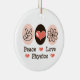 Peace symbol, heart and an atom with a nucleus and four orbiting electrons in pink and brown on cute physics t shirts, geek apparel, clothing, stationery and nerd gear make cute gifts for a physics teacher, student, teaching assistant or professor of science.