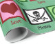 Peace Love Pirates Christmas gift. A peace sign, heart, and a skull and crossed swords make for a cute pirate present for someone who loves scallywags or plays on a Pirate mascot team.